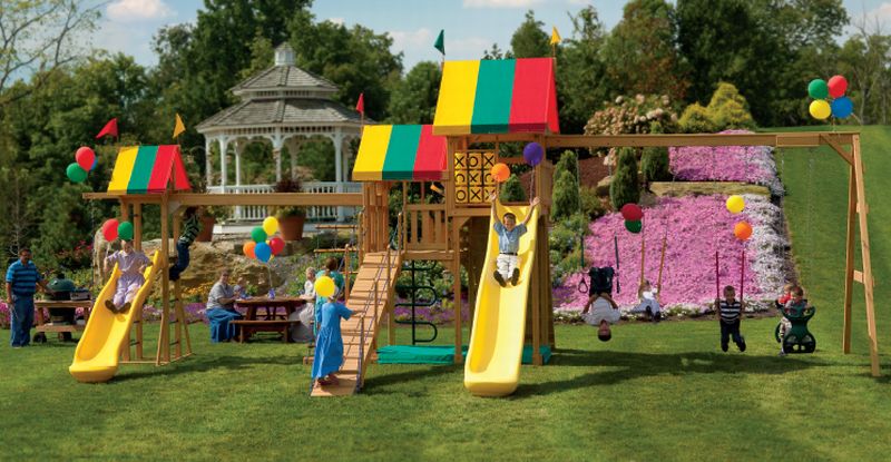 Includes Deluxe Sky Tower, Double Canopy, Disc Swing Attachment Beam,