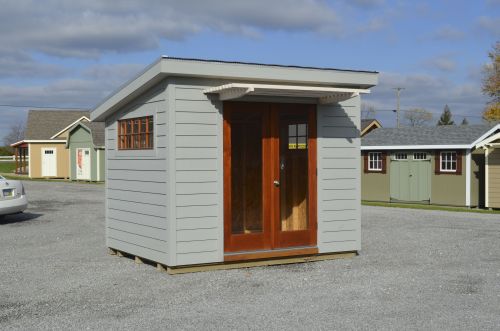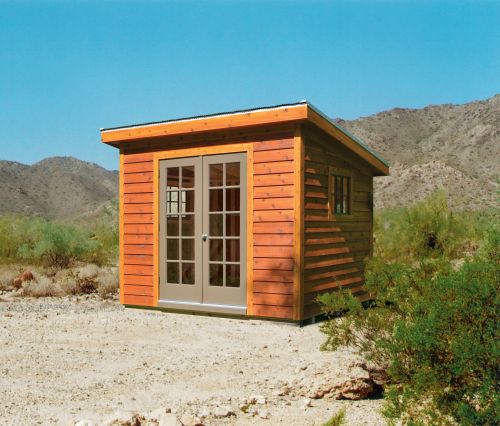 Teak stain. Corrugated steel roof.