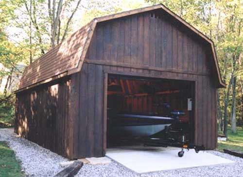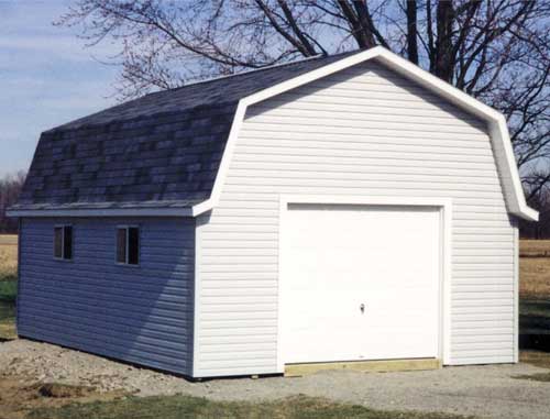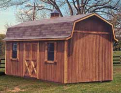The  features a gambrel style roof and 4' side walls.  This